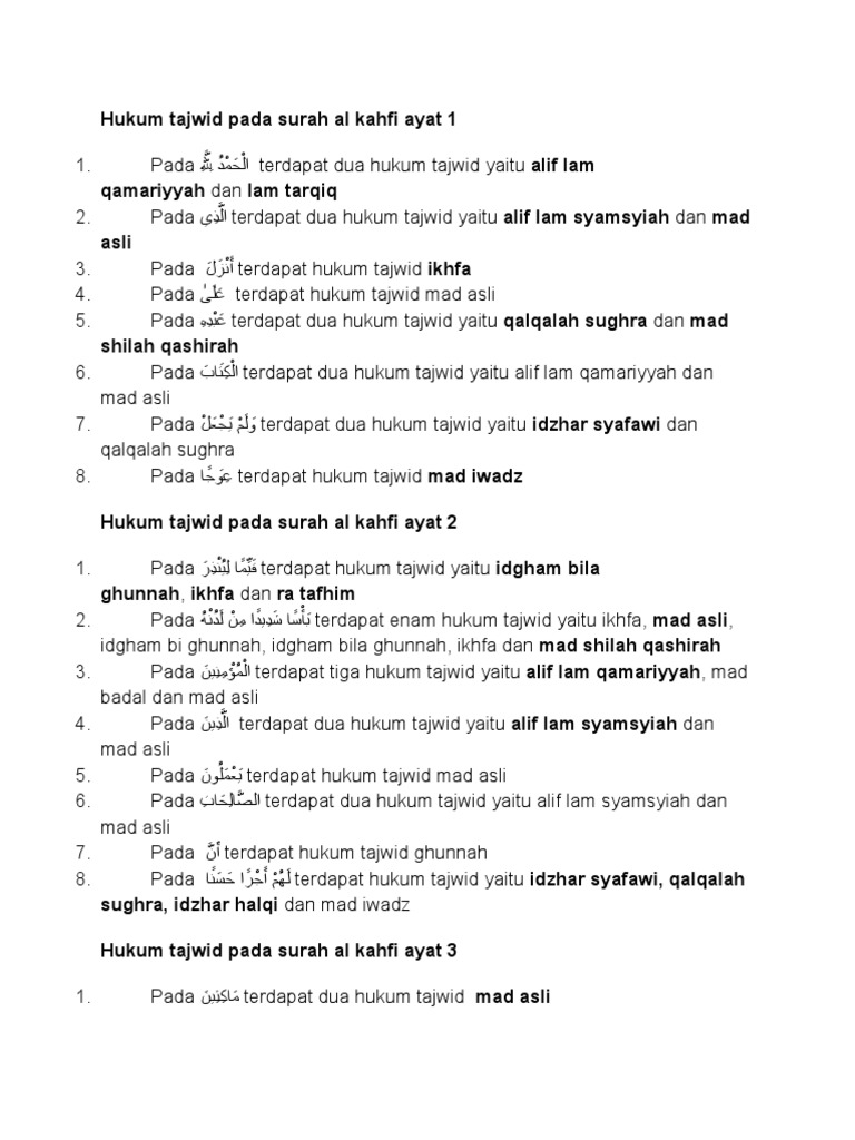 Hukum Tajwid Surah Al Kahfi : Hukum Tajwid Surat Al Kahfi Ayat 1 10 Lengkap Dengan Penjelasannya : #youtube #surahalkahfi #tajweed #resitation #hukumnunsukun #hukummimsukun #ngaji #quranpraktek pengamalan ilmu tajwid hukumnyateori dan praktek tajwidhukum t.. Tajwid surat al kahfi ayat 1 10 (tajwid surah al kahfi ayat 1 10) video ini berisi tajwid dari surat al kahfi ayat 1 10, dan insya allah ditampilkan per ayat. Surat al kahfi ayat terakhir beserta artinya gbodhi. Apr 02, 2021 · jom hafal surah al kahfi 101 110 rumiterjemahan. Berikut ini adalah hukum tajwid surat al kahfi ayat 29 lengkap dengan alasannya, pelajari hukum tajwid secara tekun agar dapat semakin cepat dalam menguasai ilmu tajwid ini. Aug 18, 2021 · hukum tajwid surat al kahfi ayat 1 10 lengkap dengan.